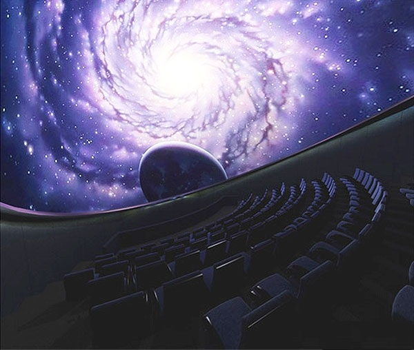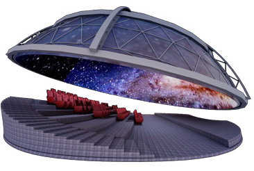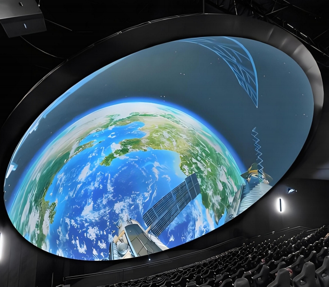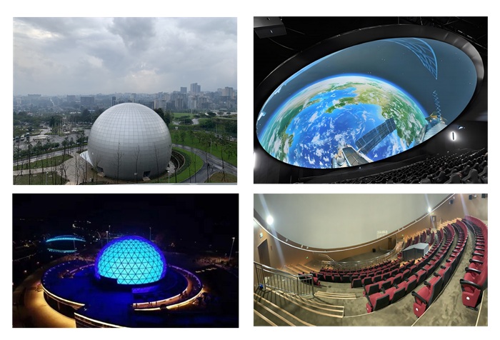 La Sala de exposiciones del teatro de la cúpula es una estructura de cúpula con una pantalla en forma de hemisferio alrededor del espectador que hace que la pantalla parezca el Cielo. Debido a que la imagen de la pantalla es grande y clara, la pantalla se puede extender desde la parte delantera hasta la parte trasera del espectador, acompañada de un sonido envolvente estéreo, haciendo que el espectador se sienta en el medio, con un efecto de escena muy fuerte. La cúpula muestra al espectador el Gran paisaje que puede crear, sumergiéndolos completamente en imágenes sorprendentemente enormes. Las películas de cortinas esféricas tienen un impacto visual único y un sonido envolvente, dando al espectador una fuerte inmersión y experiencia, haciéndoles sentir que están en el UNIVERSO. El espectador no es solo un astronauta, puede navegar por el vasto e ilimitado universo y comprender los secretos e historia del universo; A veces es una célula que puede penetrar en el mundo microscópico de animales y plantas; A veces se siente como volver al pasado lejano con una máquina del tiempo, viajar con dinosaurios o viajar por un futuro lejano para experimentar la vida técnica del futuro.